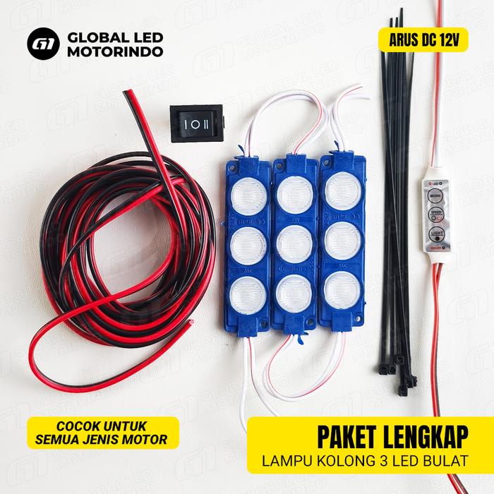 Werace Paket Lengkap Lampu Kolong 3 Led Bulat Motor Modul Kedip Dimmer Siap Pakai Saklar Kabel - Biru