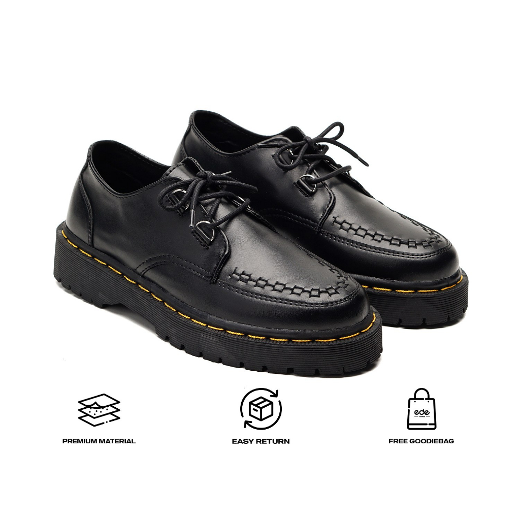 Edefootwear CURSA - Sepatu Boots Derby Casual Kulit Tali Hitam Pria