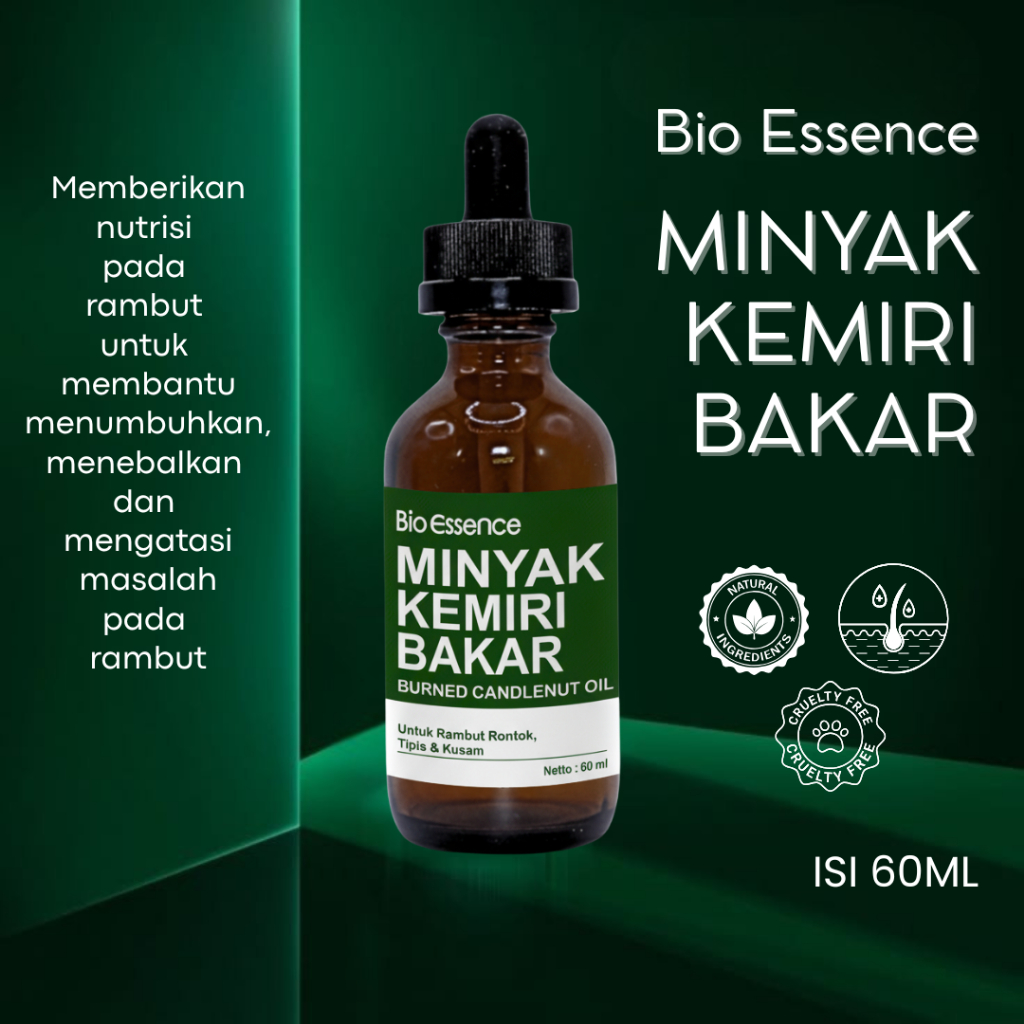Minyak Kemiri Bakar Bio Essence 60ml– Nutrisi Alami untuk Menguatkan & Menebalkan Rambut Rontok