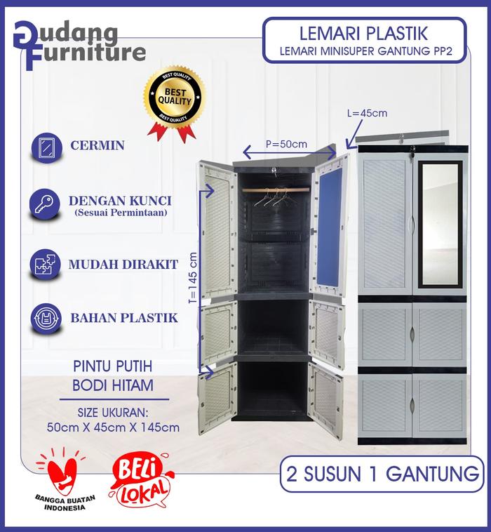 Lemari Include Gantungan Lemari Pakaian Plastik / Lemari Plastik Pakaian 3 Susun Dan 2 Pintu Panjang Dengan Kunci Dan