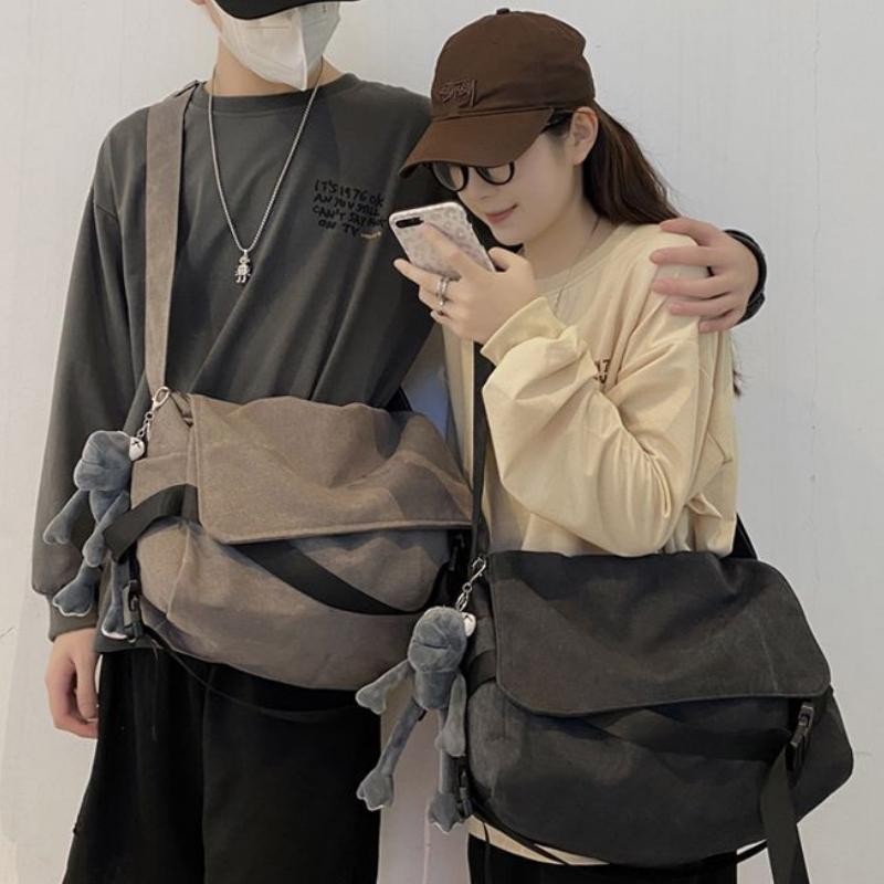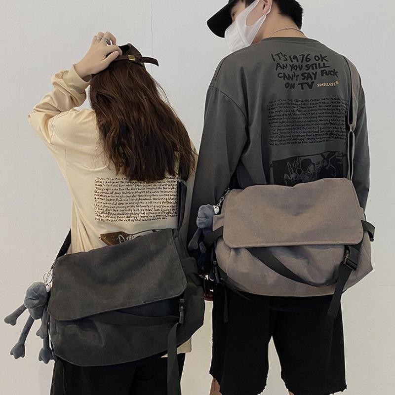 Slingbag Cowok Mahasiswa, Tas Kanvas Jepang, Universal, Klasik Minimalis, Santai, Shoulder Bag