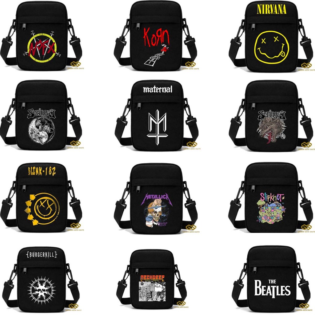 Tas Selempang Hitam Slingbag Mini Motif Band - Amuzzz12
