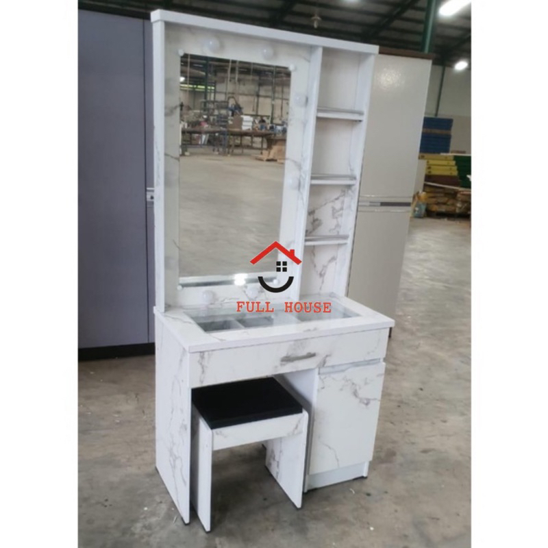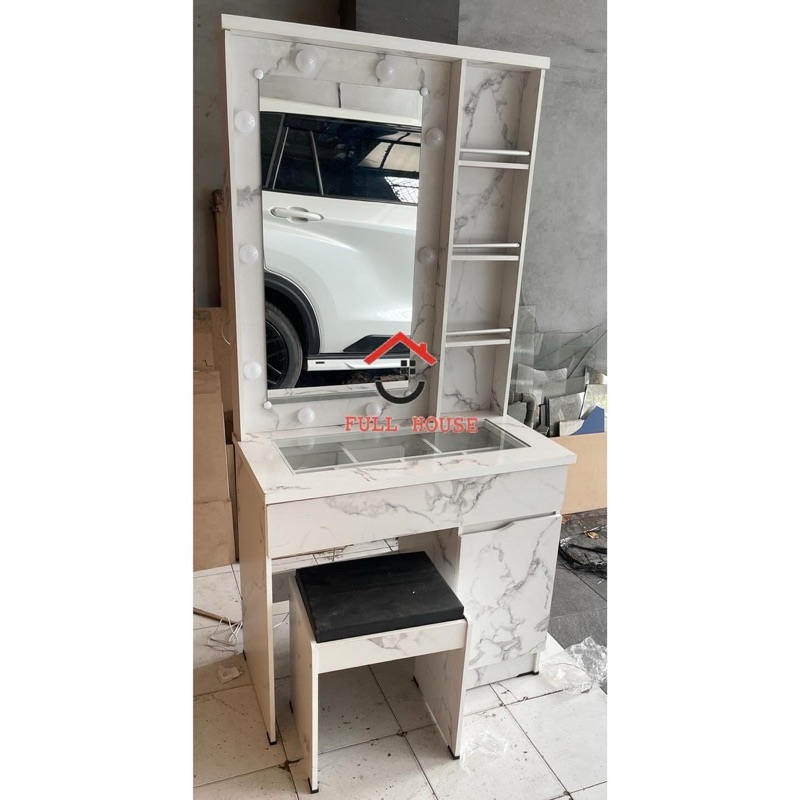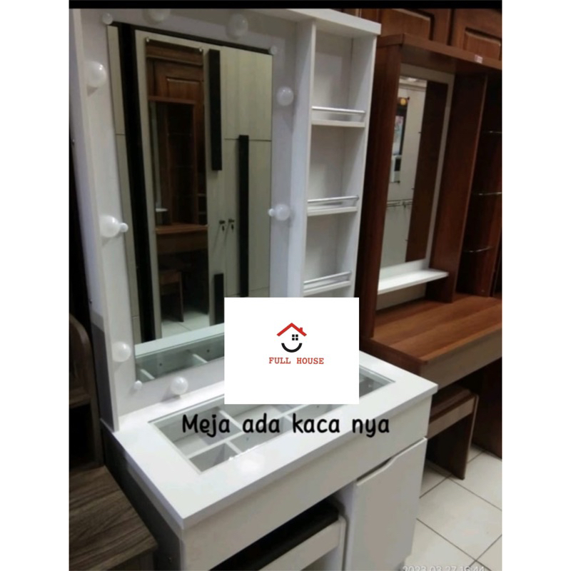 (fullhouse furniture) meja rias dengan laci besar top kaca banyak sap dan lampu dengan kursi termurah top quality meja rias influencer meja rias tiktok