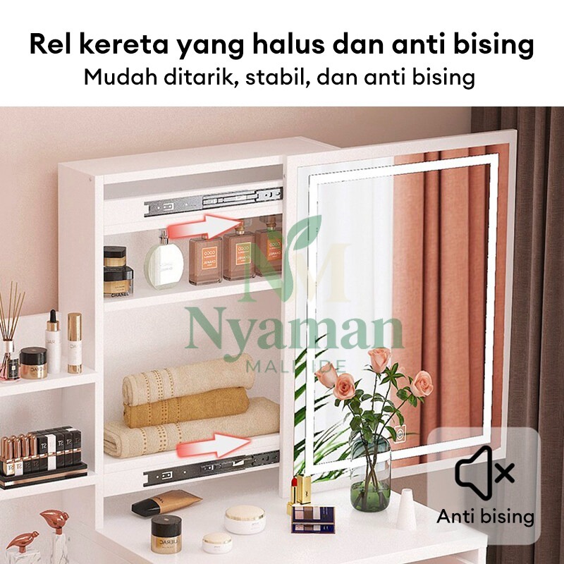 NYAMAN Meja Rias Simpel Dan Cantik Dengan Lampu Rias Led Terang Dan Pintu Cermin Geser Built-In