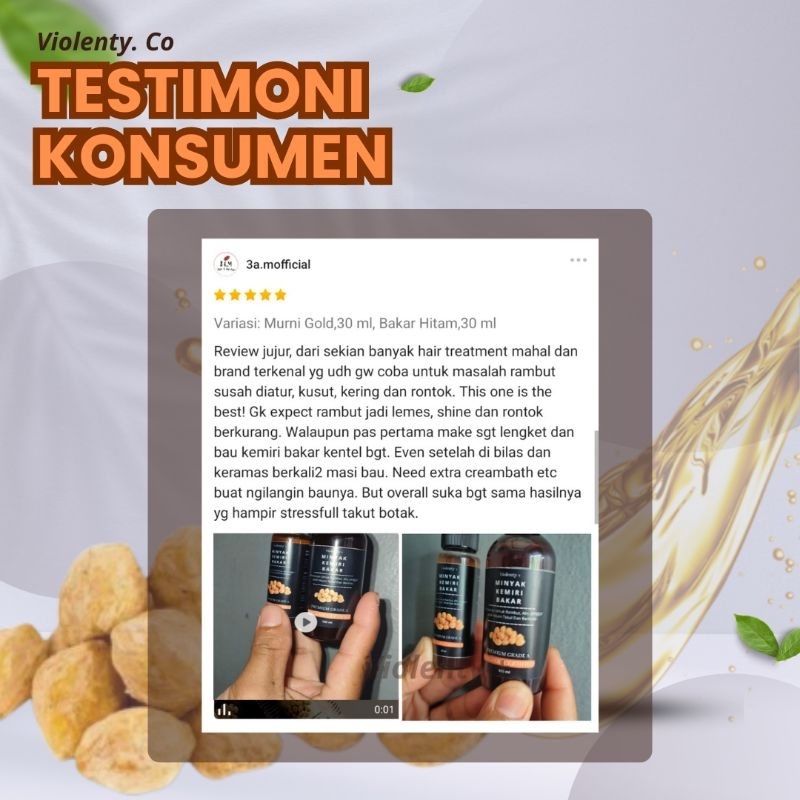 Violenty Minyak Kemiri Bakar Murni 100 PERSEN Asli Penumbuh Rambut Penghitam Penebal Rambut 20 ml