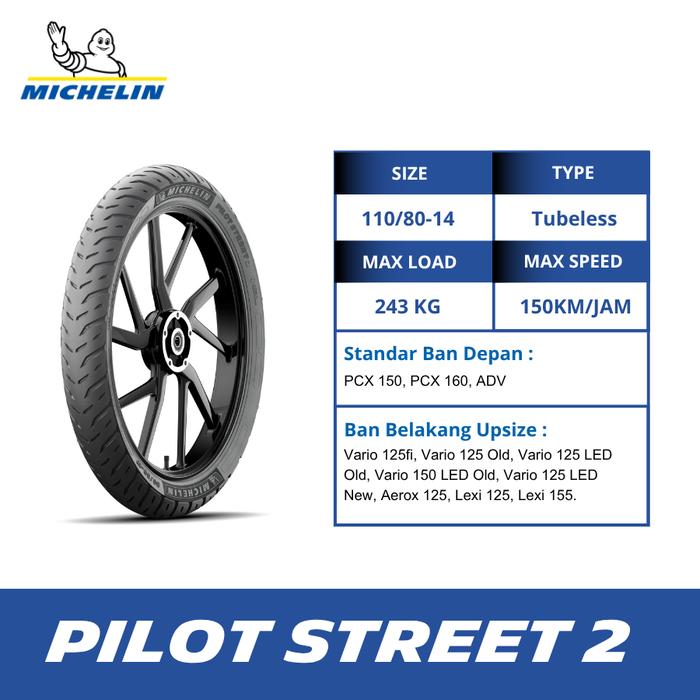 Ban Motor Michelin Pilot Street 2 - Ukuran 110-80 R14 Tubeless