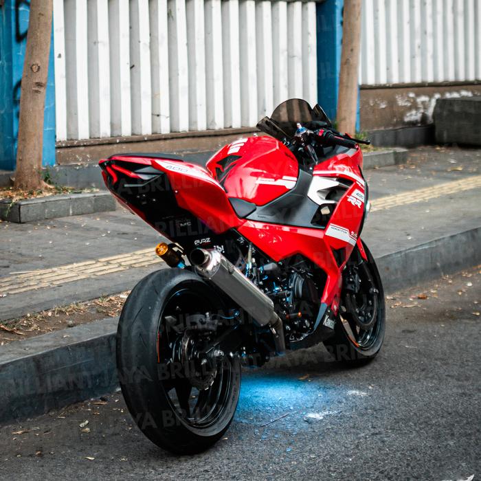 Paket Lengkap Lampu Kolong Led Ninja 250 Fi New Bonus Stiker Hologram 2 Lampu Kolong + Kabel 3 Meter + Saklar - Biru