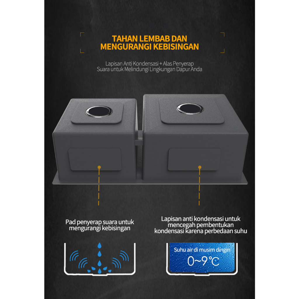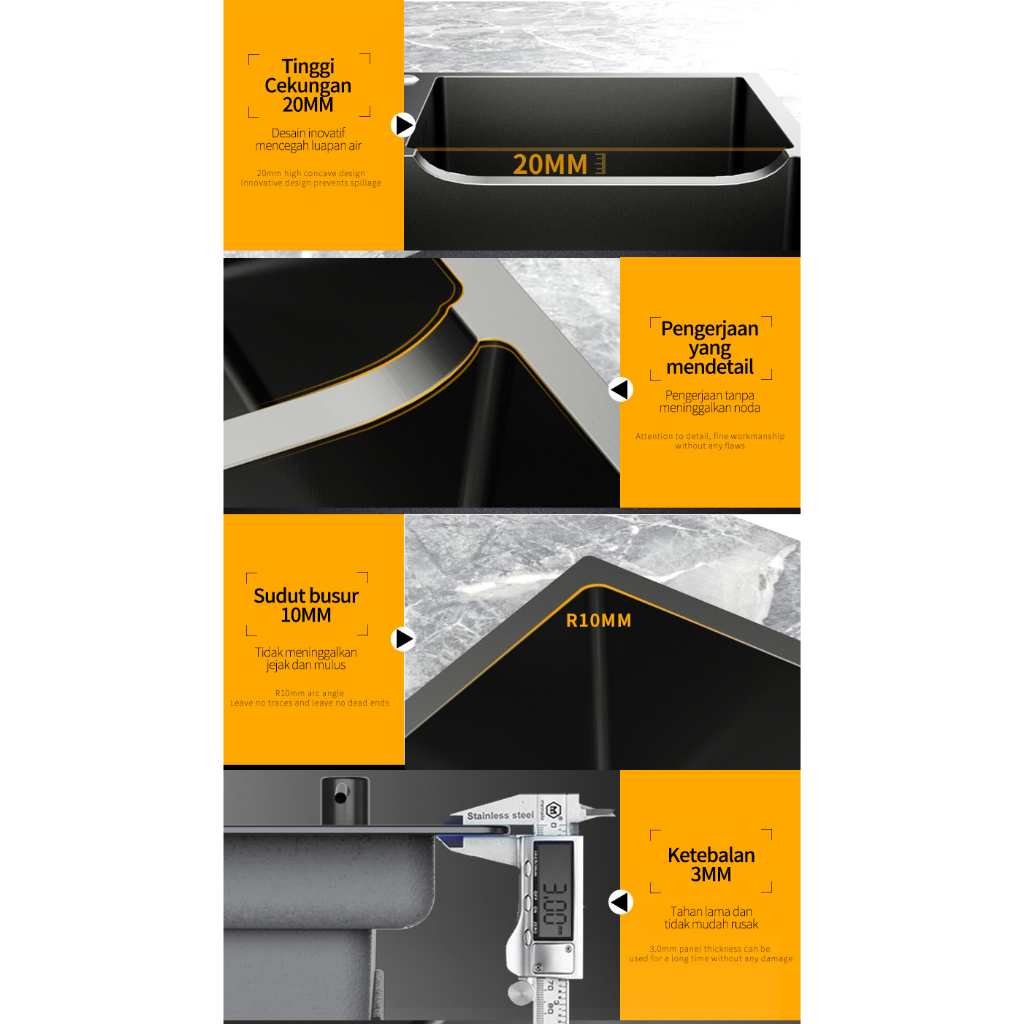 Set Lengkap Kitchen Sink Black / Wastafel Bahan Stainless Steel 304 / Wastafel Dengan Keran yang Disesuaikan
