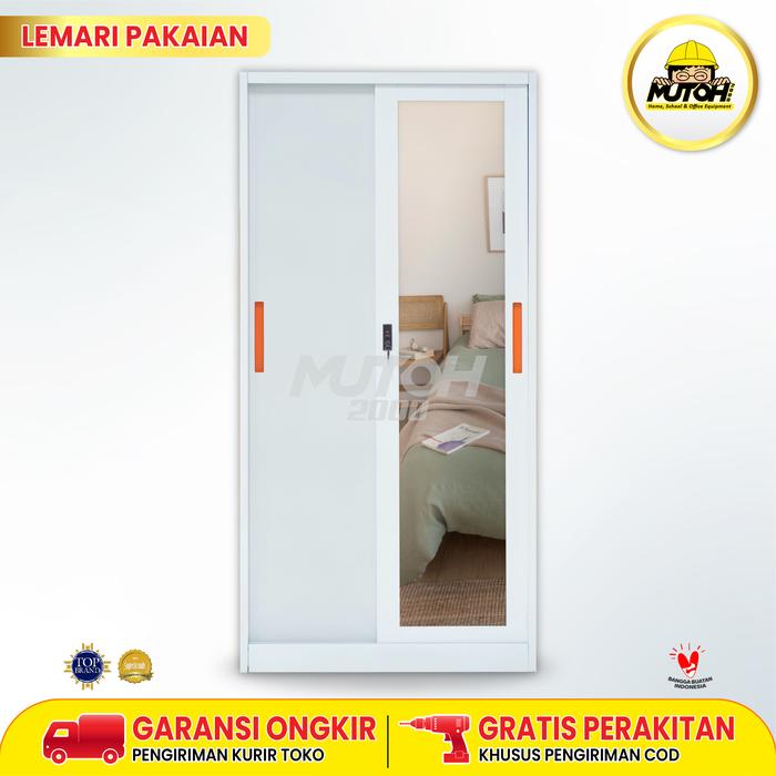 Lemari Besi Pakaian Baju 2 Pintu Sliding Plat Cermin Geser V-90 Cm | Putih Mutoh2000 - Tidak Dirakit