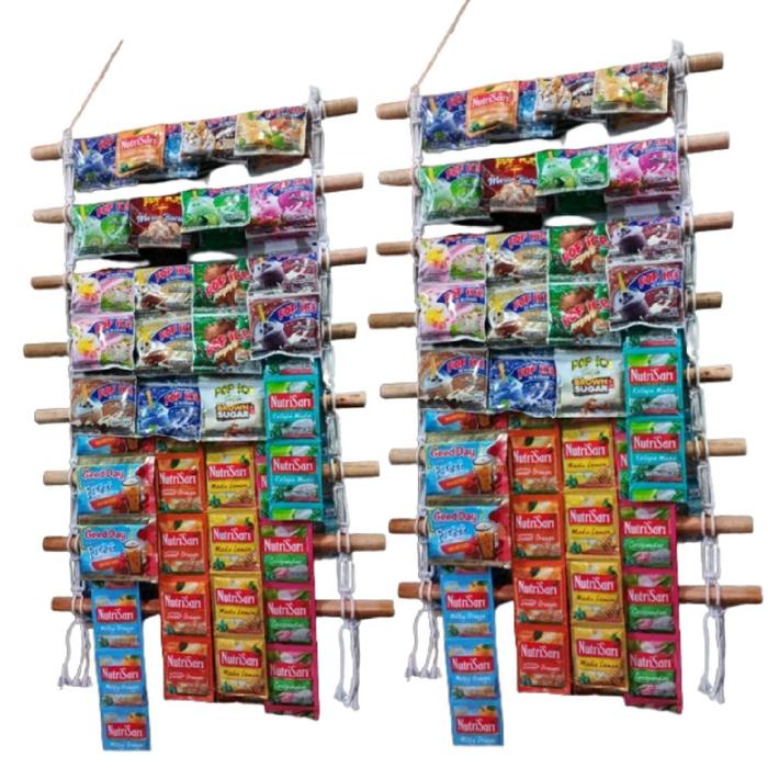 Rak Warung Rencengan/Rak Kopi Sachet/Rak Jualan/Rak Chiki/Rak Display Kayu Gantungan Serbaguna Tempel Dinding - 4 Susun