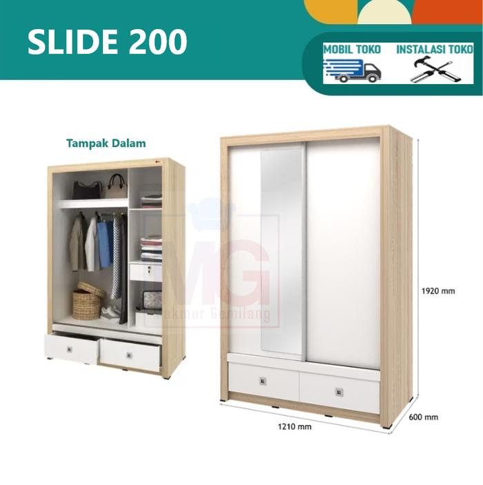 Lemari Pakaian Sliding 2 Pintu Kaca Modern - Sl 200 Putih