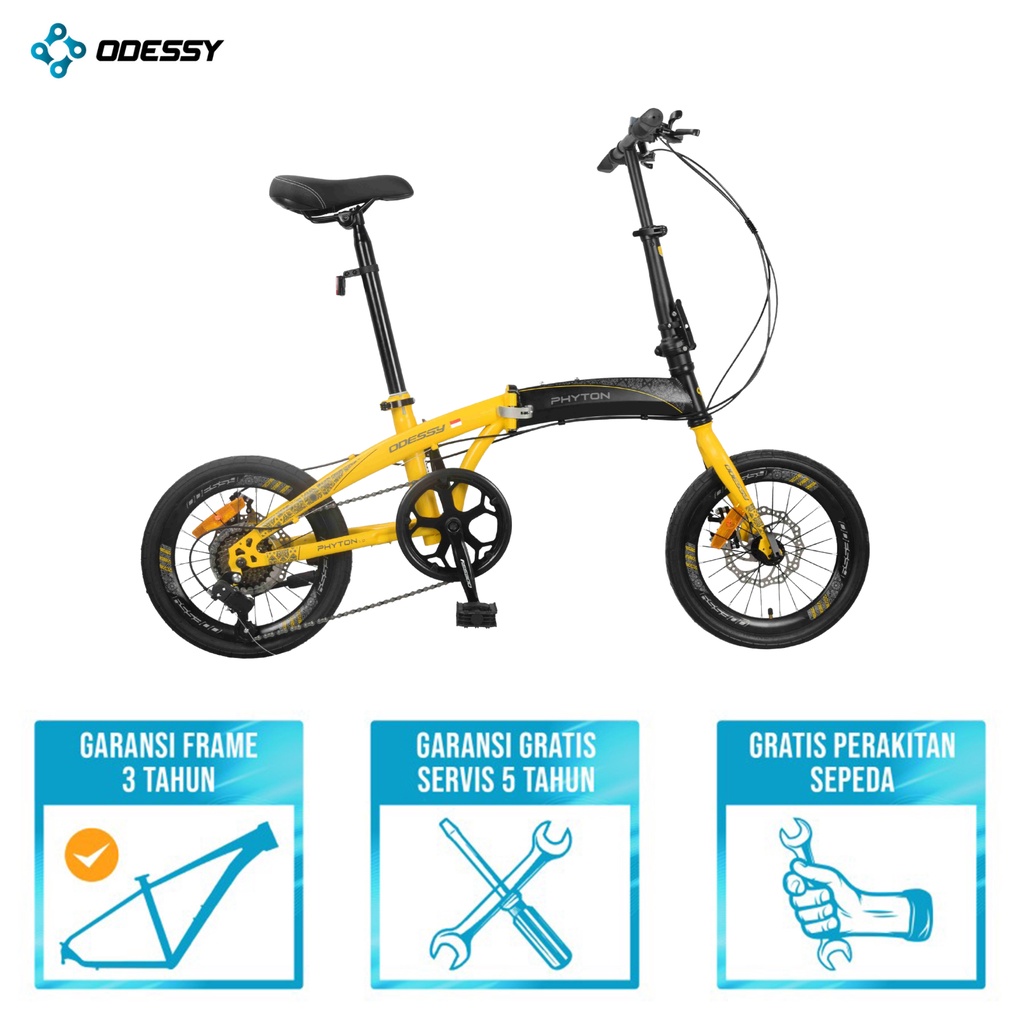 Sepeda Lipat Odessy Phyton Tidak Bahasi Ukuran 16" dan 20" 36 Frame Steel - 7 Speed Garansi Original