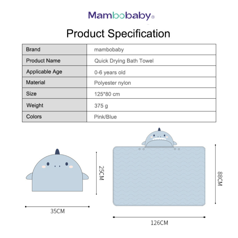 Mambobaby Quick-Drying Bath Towel Swim Handuk Berenang Anak Bayi