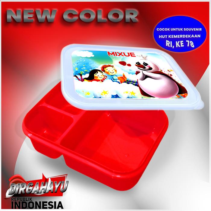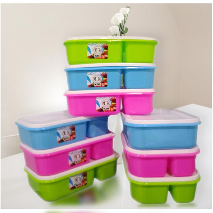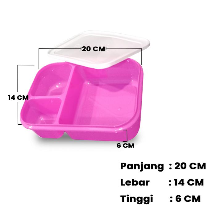 2 Pcs Lunch Box Serbaguna Makanan Sekat 3 / Kotak Plastik Tempat Bekal 900Ml Kitchenware Makan - Biru Tutup Polos, 1 Pcs