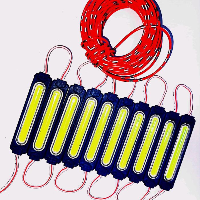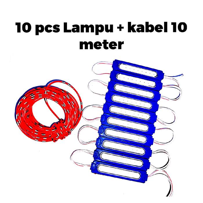 10 Pcs Lampu Led Cob 9 Titik 12 Volt 24 Volt Led Variasi Lampu Kolong Truk Bus Motor Mobil Dan Kabel 10 Meter - Merah, 1