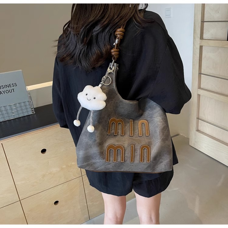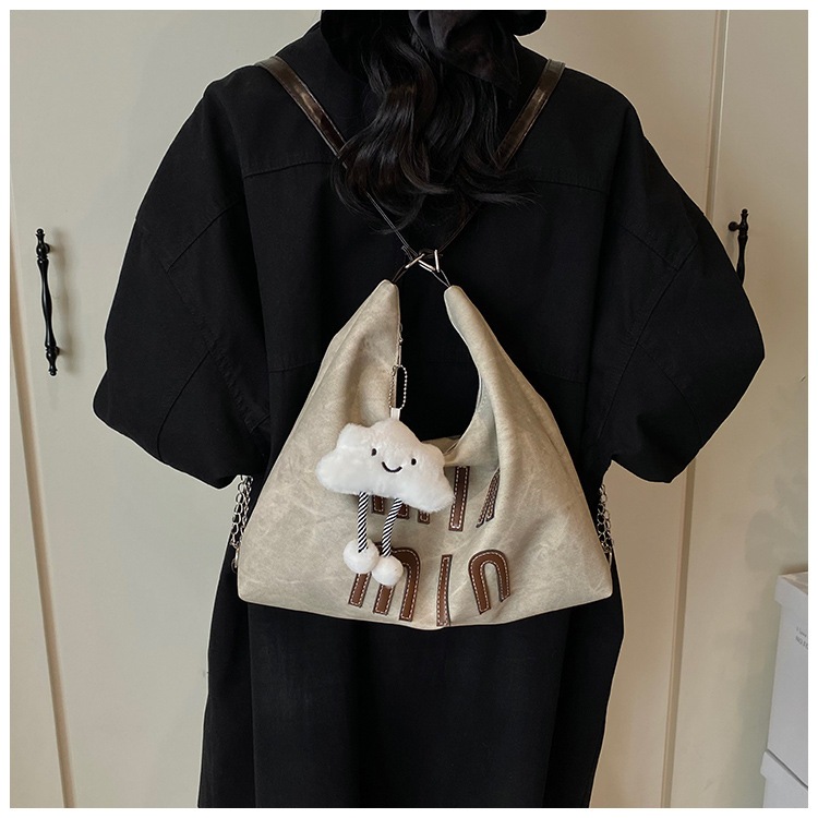 Tas Retro Kapasitas Besar Tas Wanita Cetak Alfabet Cetak Tote Serut Bahu Tas Ketiak Kanvas Selempang