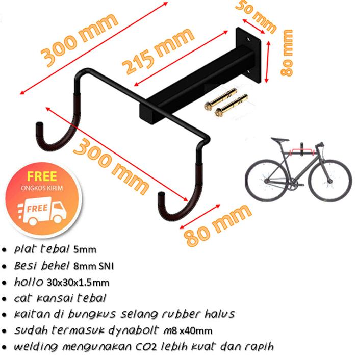 Gantungan Sepeda Dinding Tembok |Besi Holo 30 Tebal 1.5 Mm| Las Co2 - Hitam