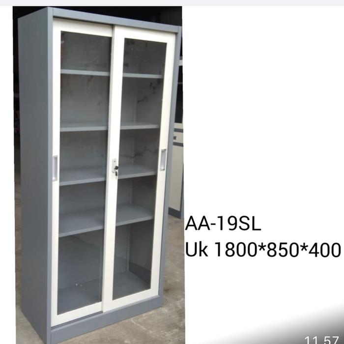 Lemari Arsip Besi Pintu Sliding Kaca Murah Rak Cupboard