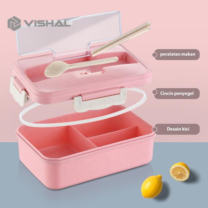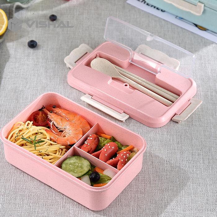 Vishal Lunch Box Kotak Bekal Makan Jerami Gandum Kotak Makan 1000Ml 4 In 1 Free Sendok Tempat Makan Vs-1 - Vs-1-Biru