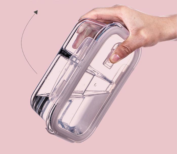 Vs - Toples Lunch Box Penyimpanan Makan Bahan Kaca Microwave Oven Safe - 680MlNo Sekat, Hijau