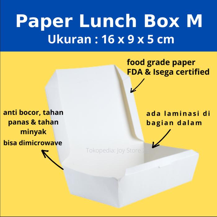 Paper Lunch Box / Kotak Makan Kertas Ukuran M - 16X9X5 Cm - Ivory Putih