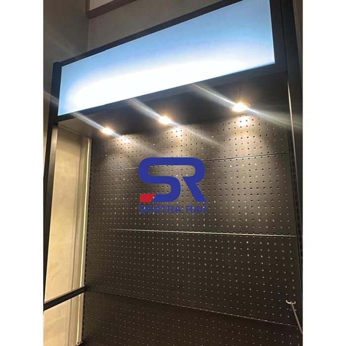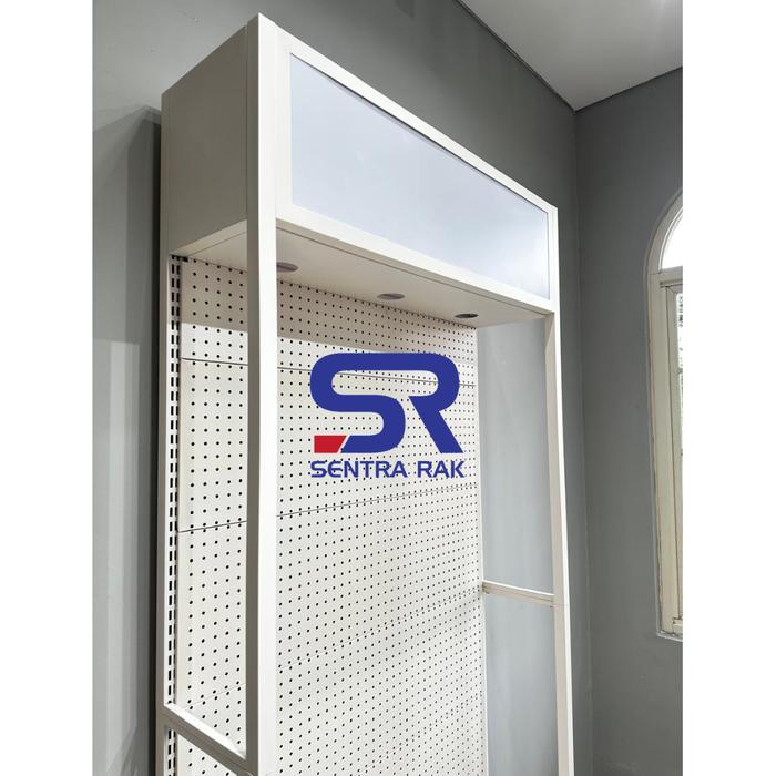 Rak Promo Perforated With Light Box - Rak Promosi Toko - Putih