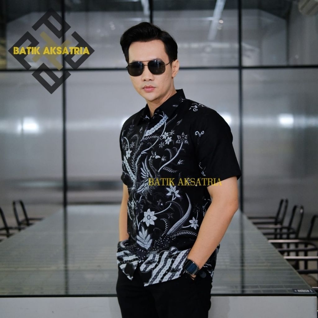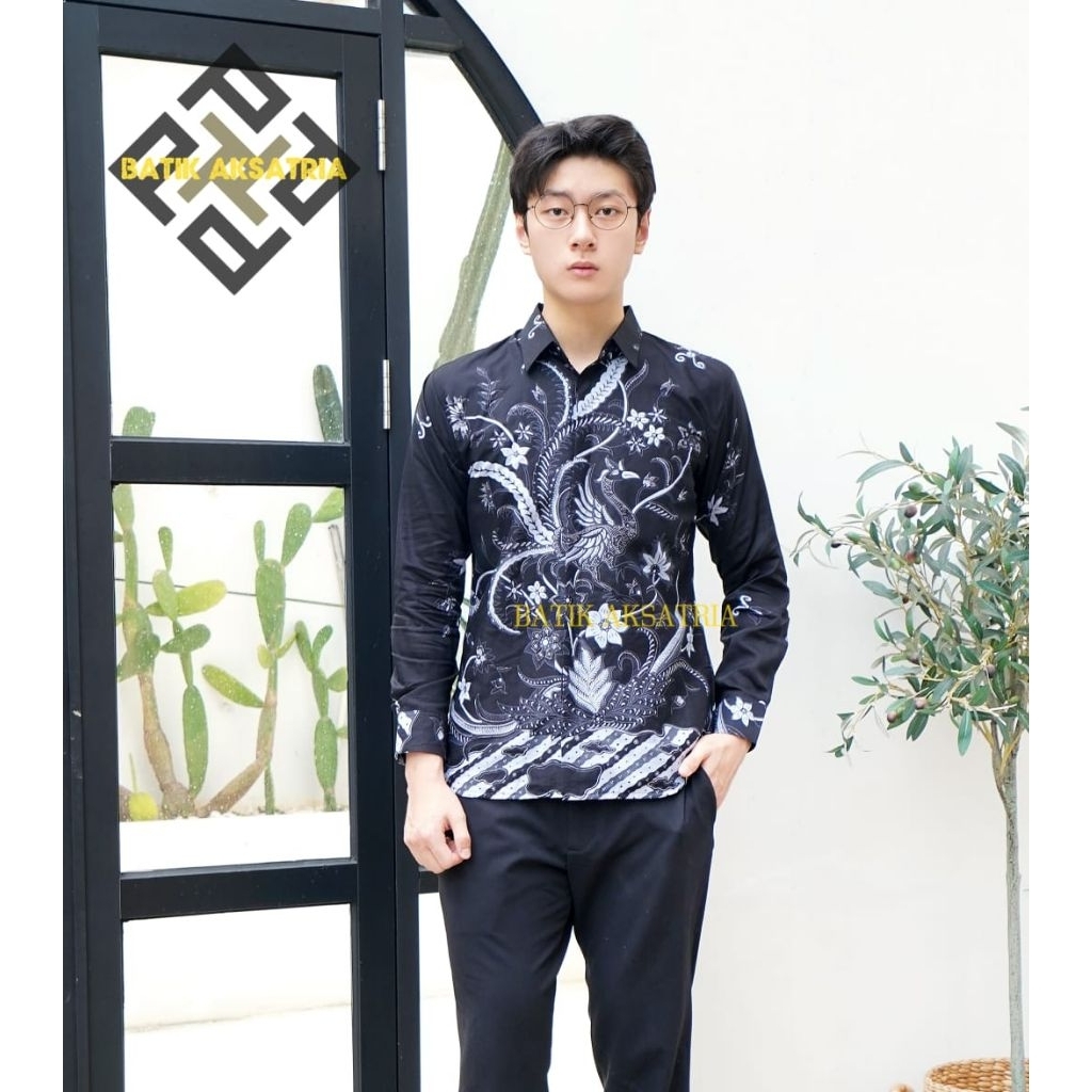 Batik Aksatria Motif Laksana Batik Hitam Pria Kemeja Batik Pria Slimfit Bahan Katun Premium