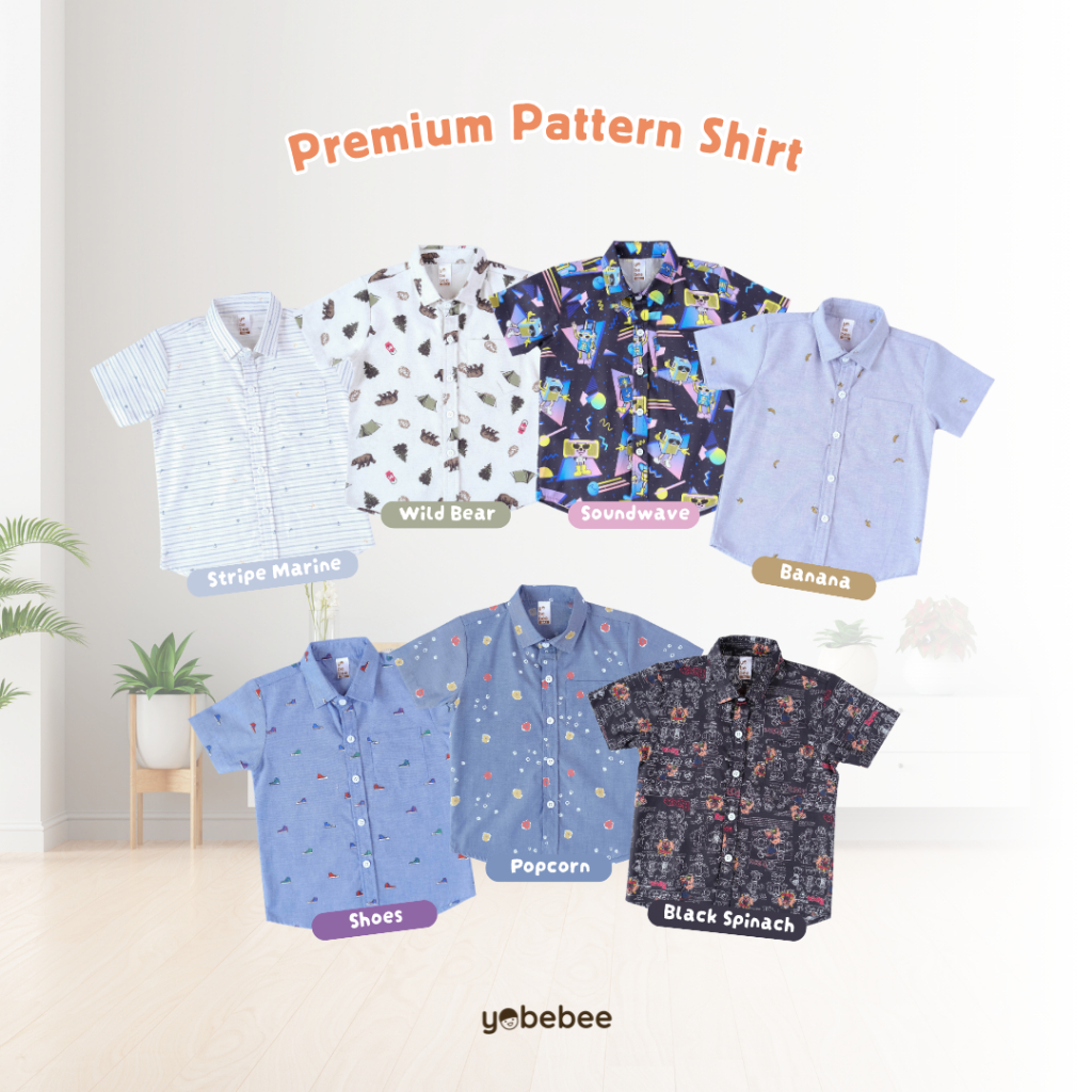 YOBEBEE KEMEJA KATUN PATTERN TANGAN PENDEK ANAK LAKI LAKI USIA 2 4 6 8 9 10 TAHUN ATASAN CASUAL ANAK