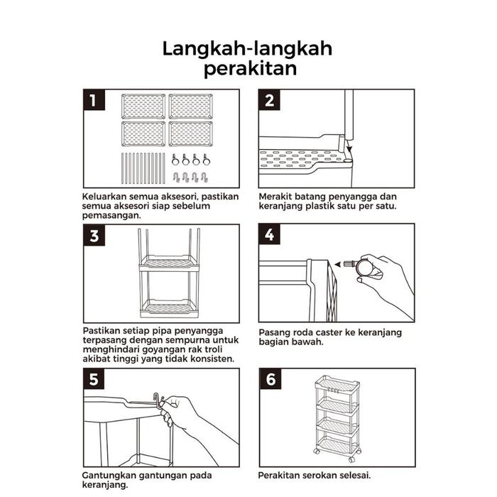 Rak Serbaguna Dengan Supercook Roda Rak Kamar Mandi Square Rak Persegi Dapur Plastik 4 Susun - 4 Susun Roda,Putih