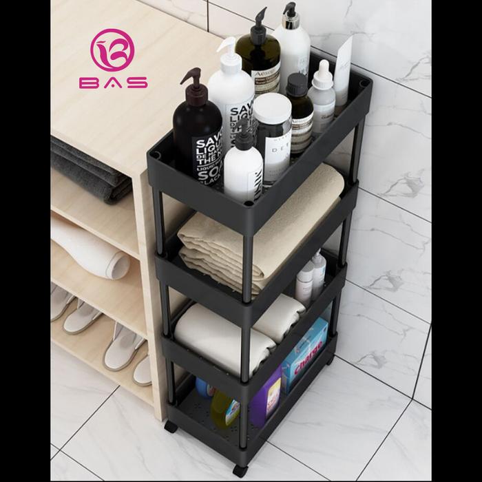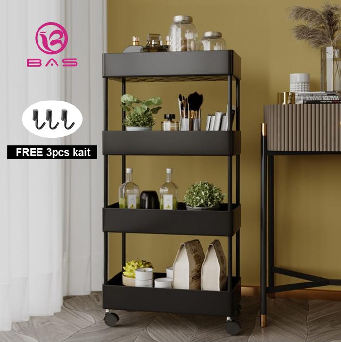 Bas Square Rak Dapur Rak Troli 4 Tingkat Dengan Roda Hitam - Hitam