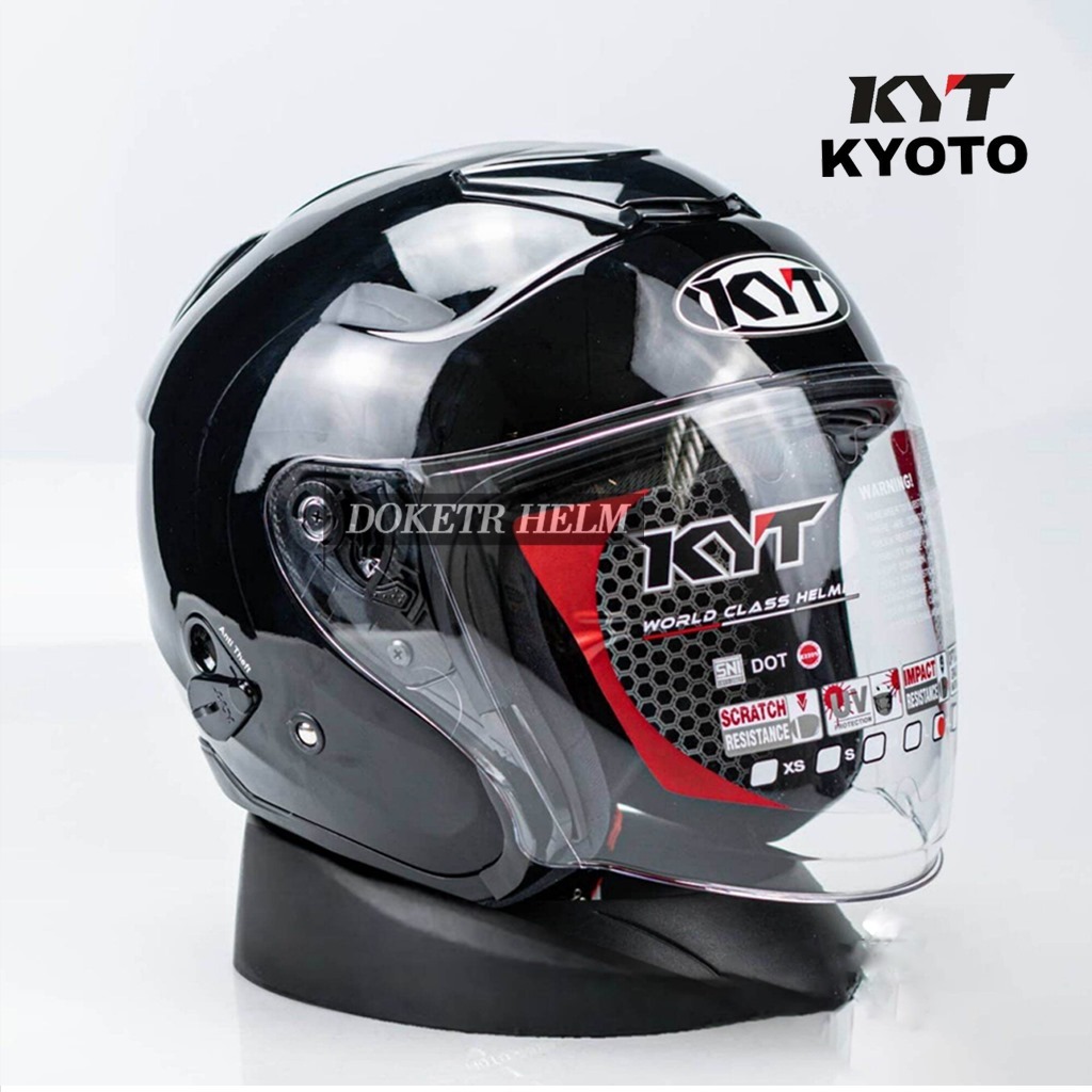 𝗧𝗘𝗥𝗠𝗨𝗥𝗔𝗛✅ HELM KYT KYOTO SOLID BLACK GLOSSY HALF FACE SINGLE VISOR
