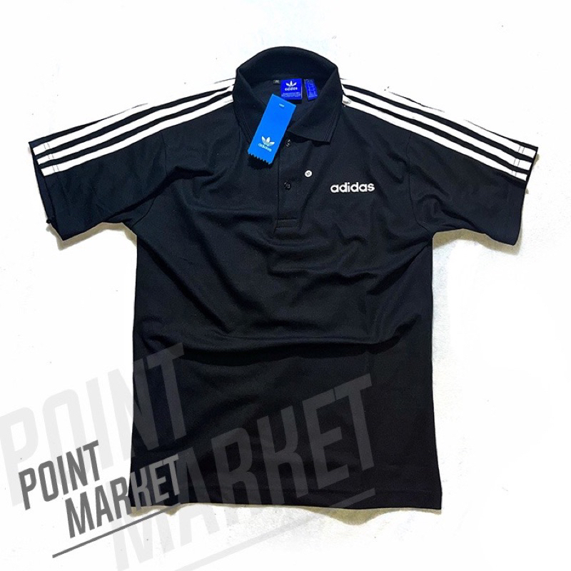 Baju Kerah Kaos Wangki Polo Shirt Adds List Hitam Warna Putih Unisex Full Tag
