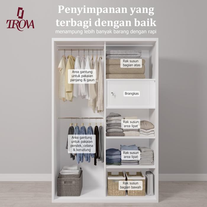 Trova Lemari Baja 2 Pintu Geser 120Cm Minimalis Dengan Brankas Cermin & 2 Gantungan Baju Untuk Kamar Tidur - Z00