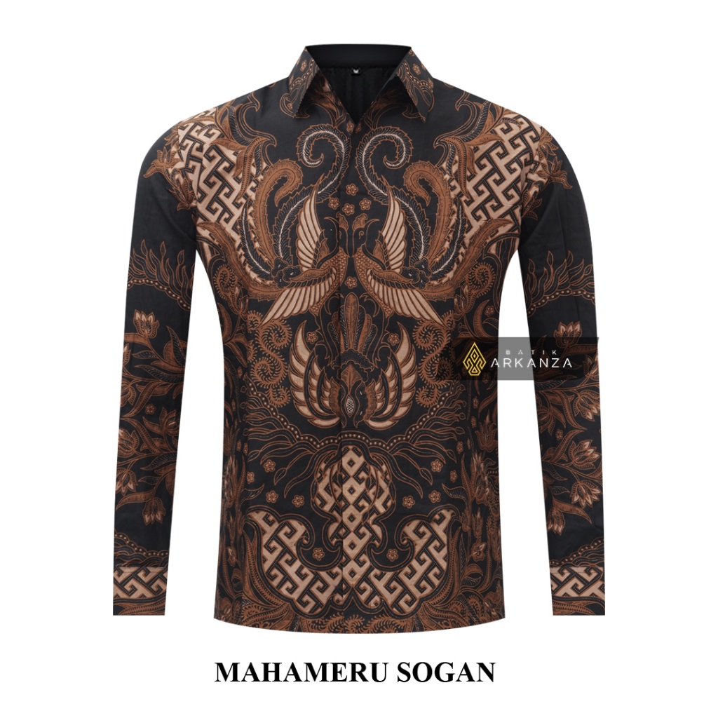 Batik Arkanza Motif Mahameru Sogan Kemeja Baju Batik Pria Slimfit Full Lapis Furing Tangan Lengan Panjang Solo Laweyan