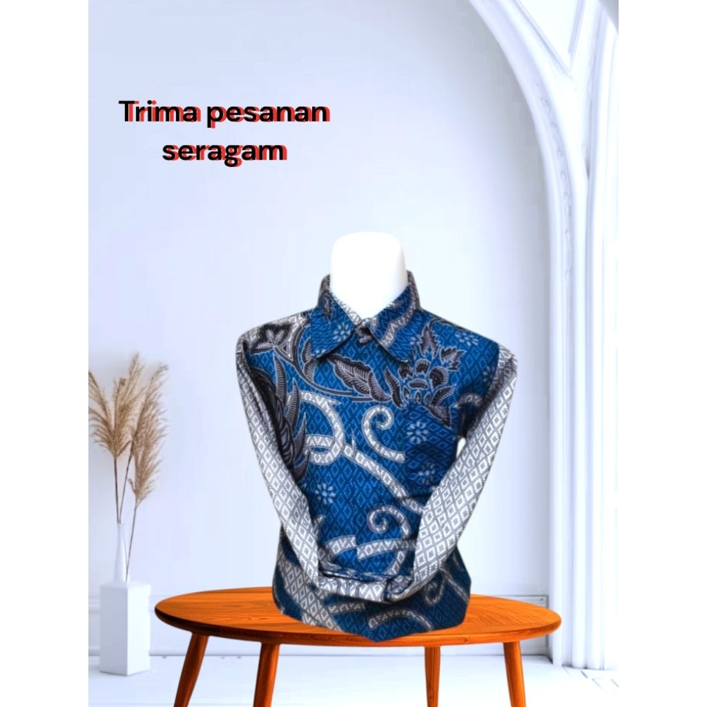 Batik Kemeja Panjang Pasangn\Coplle Ayah & Anak Premium Bahan Katun Solo Premium Jual Terpisah Motif Gurita Warna Abu-Ab