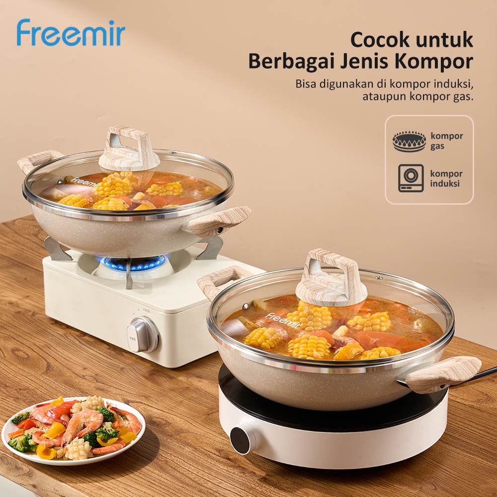 freemir Wajan Panci Beige Series Induksi 24cm Kedalaman 10cm Granit Anti Lengket Serbaguna