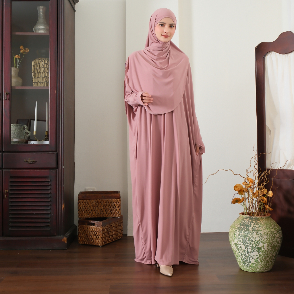 Radeva - Set Dress Abaya Hijab Matt Jersey Rosewood