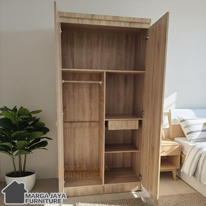 Lemari Pakaian Baju 2 Pintu Laci + Kaca Full - Putih Laci, Belum Dirakit