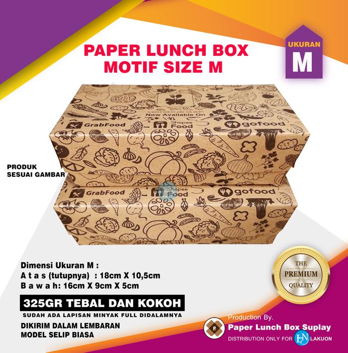 Paper Lunch Box Isi 50Pcs Paper Lunch Box Uk L Bahan Craft 325 Gram Motif Vintage Harga Satuan Premium Quality Size L 32