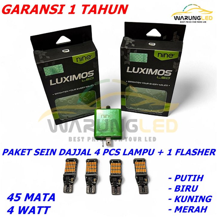 PAKET SEIN SIGN MOTOR T10 45 MATA EXTREME BRIGHT DAJJAL ORIGINAL 9NINE LUXIMOS LED GARANSI 1 TAHUN