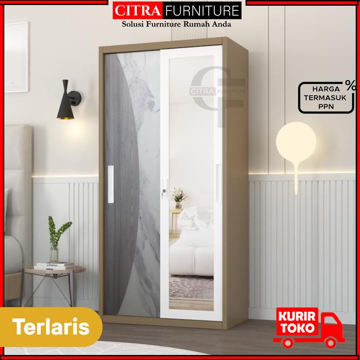 Lemari Pakaian Sliding 2 Pintu Full Cermin|Lp Baju Sleding Kaca Full - Motif-I, Dirakit