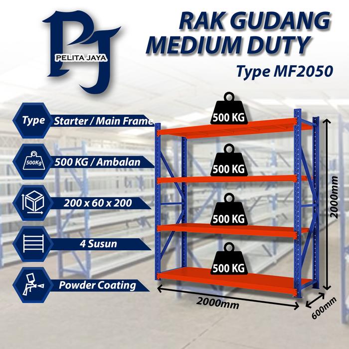 Rak Gudang Besi 500 Kg 4 Susun 2 Meter Medium Duty - Mf2050, 3 Ambalan