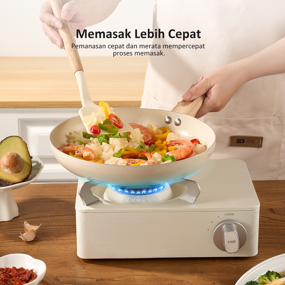 freemir Wajan Penggorengan 24cm Warna Krem Beige Anti Lengket dengan gagang serat kayu