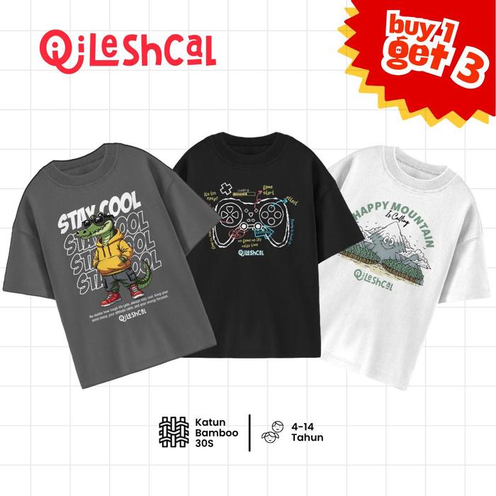 QILESHCAL - ( BUY 1 GET 3 ) KAOS WARNA GREY HITAM PUTIH PAKAIAN ANAK NYAMAN DAN STYLISH DENGAN BAHAN COTTON BAMBOO & SAB