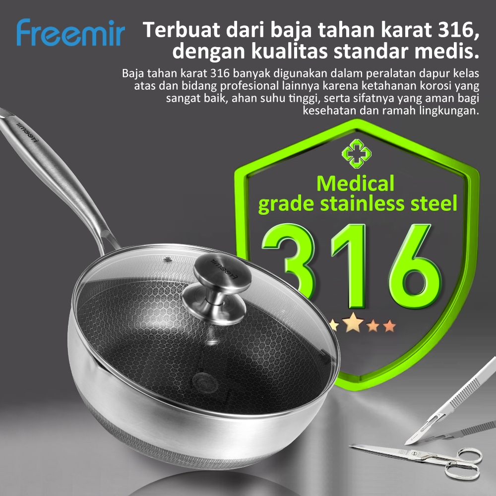 freemir Wajan Penggorengan Premium stainless steel SUS 304 Foodgrade Anti Karat wajan stainless steel