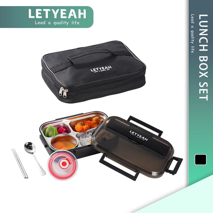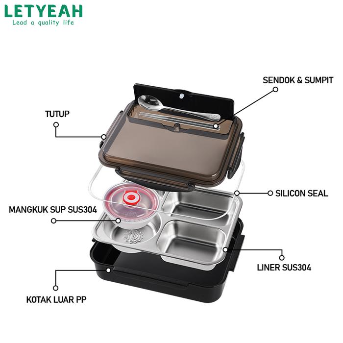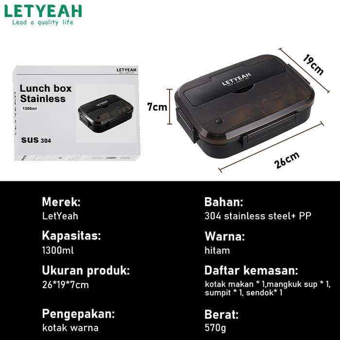 Original Baru Big Size Stainless Steel 304 Letyeah Lunch Box Set Stainless Steel 304 Kotak Makan 1300Ml Gratis Man