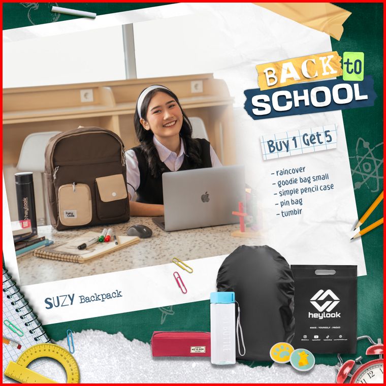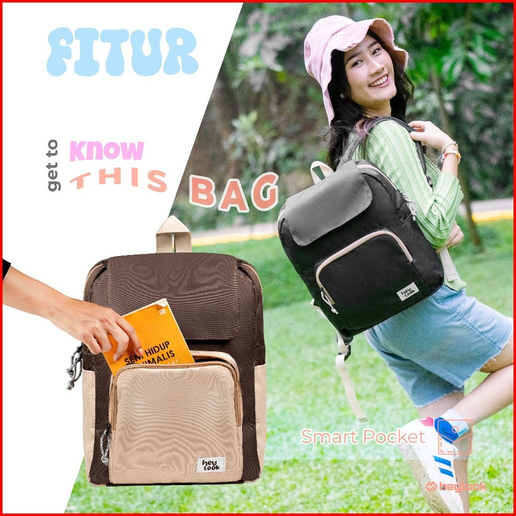 Heylook - Paket Hemat Senior Tas Ransel Wanita Jennie Tas Backpack Punggung Cewek Tas Sekolah Perempuan Tas Kuliah Tas L