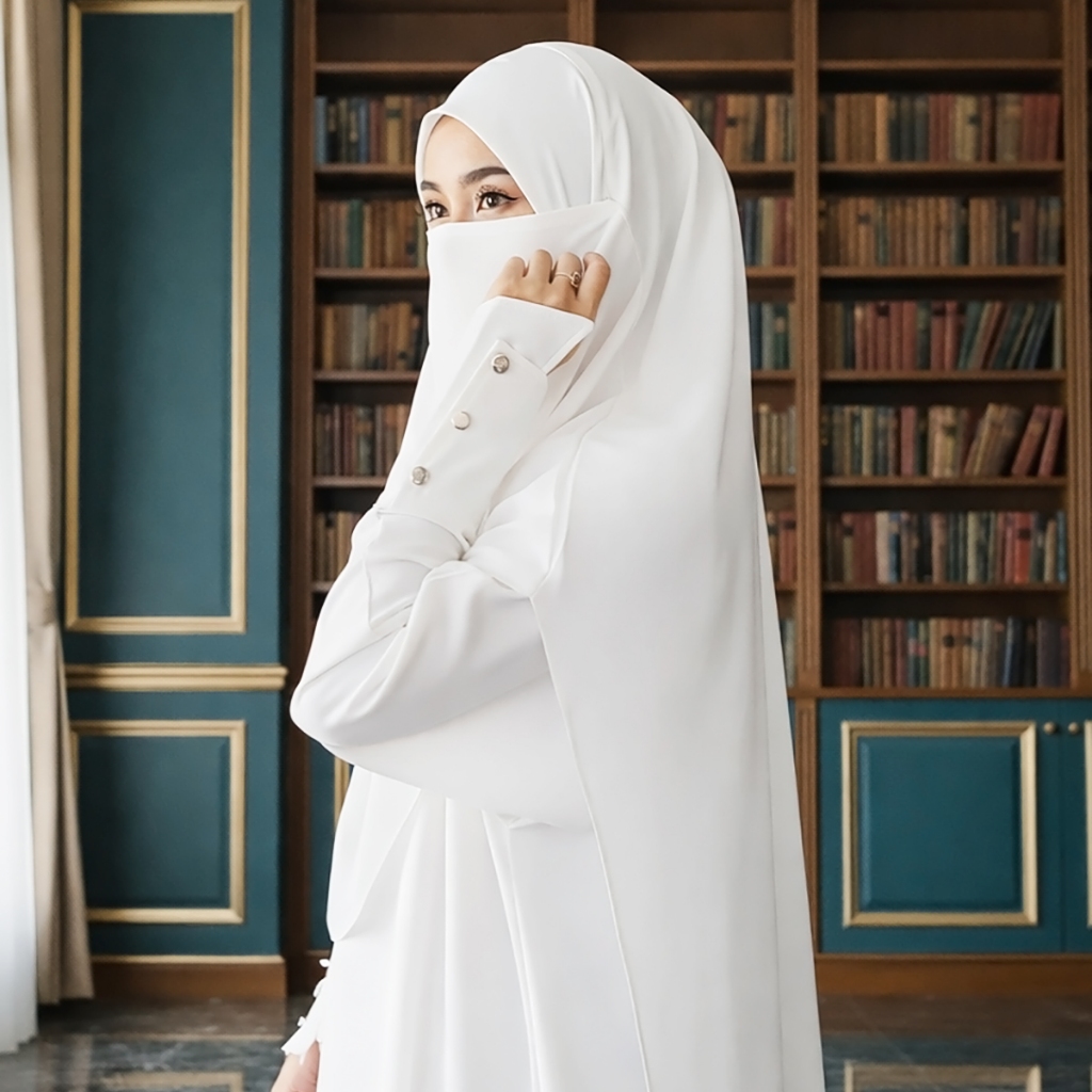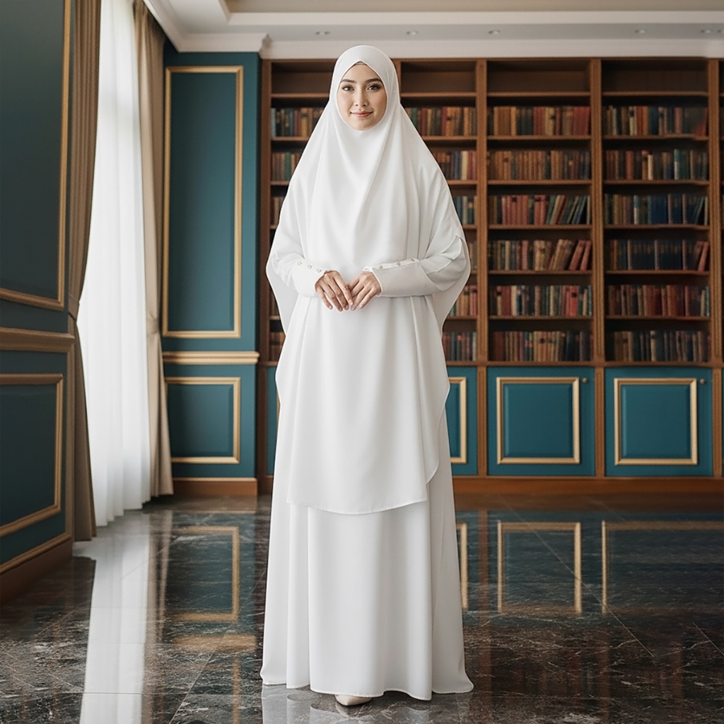 Aqueenah - Abaya Aisyah Gamis Syari Umroh Haji Set Hijab French Khimar Premium Basic Daily