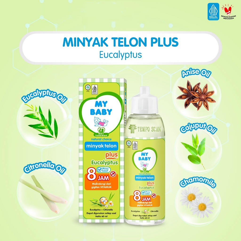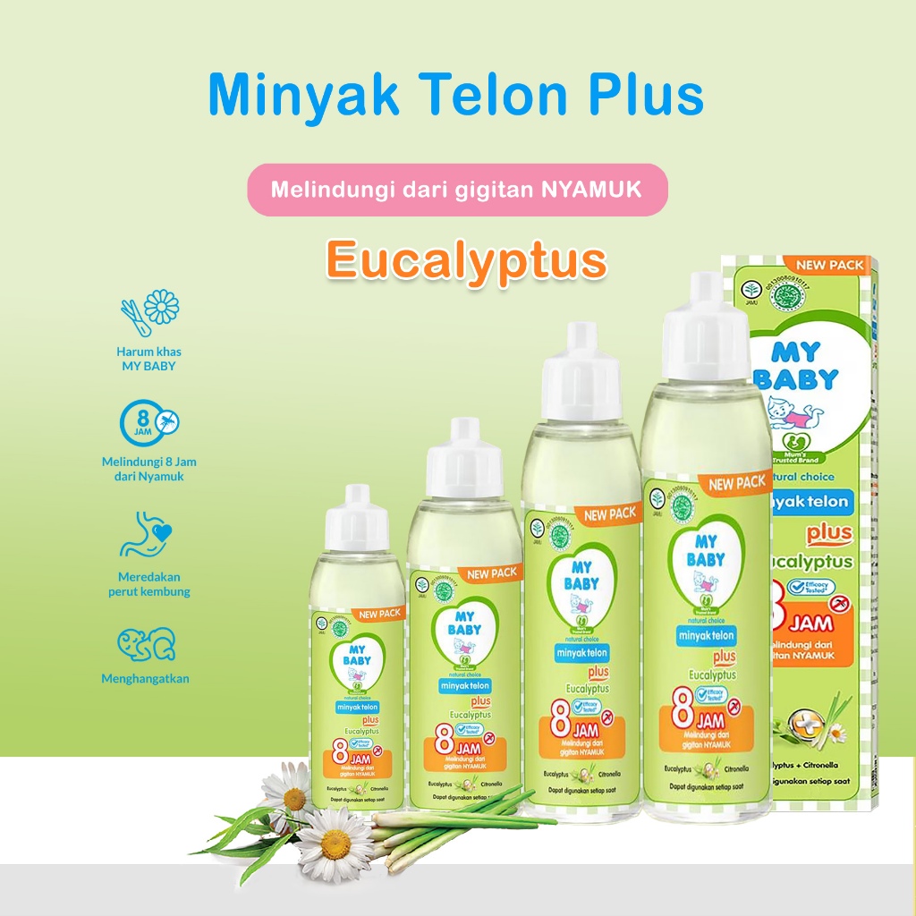 Minyak Telon Plus My Baby Eucalyptus (30ml) (60ml) (90ml) (150ml) – Melindungi dari Gigitan Nyamuk hingga 8 Jam, Meredakan Perut Kembung