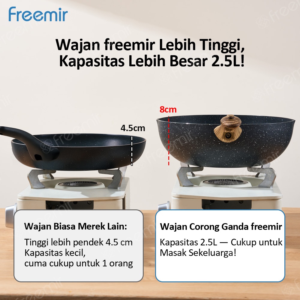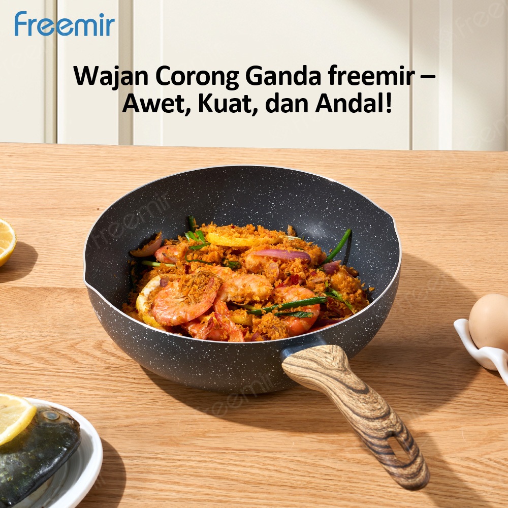 freemir Frypan Cekung 24 cm Anti Lengket Corong Anti Tumpah Anti Lengket Foodgrade Wajan Anti Lengket